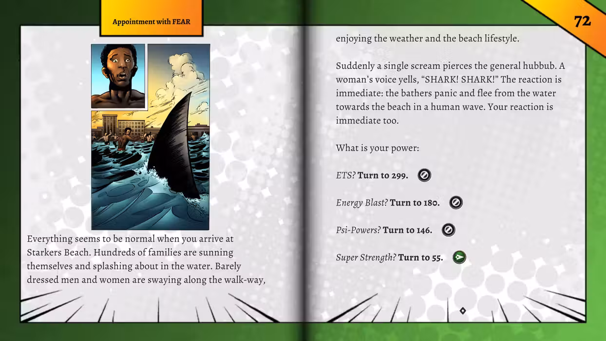 Relive Fighting Fantasy – the beloved text-based, interactive adventures of the 80s and 90s! You have a choice of four super powers - Psi-Powers, Super Strength, Enhanced Technological Skills or Energy Blasts - and the power you choose will affect the course of your mission. There are Hero points to be won or lost, clues to follow, dangers to face and villains to fight. Appointment with FEAR has been converted to a digital format using Tin Man Games' acclaimed Gamebook Adventures engine.