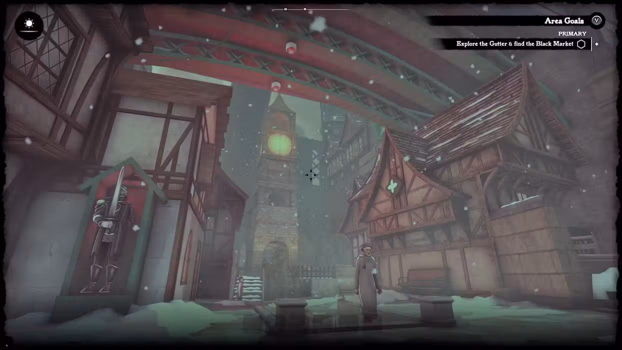 Abermore is a first-person stealth RPG where players adopt the mantle of "The Unhanged Man", a legendary Robin Hood-esque figure in the strange and surprising city of Abermore, during the 18 days in a run up to a daring heist. Every campaign is unique, daisy chaining together robberies, across countless level variations. Each new day provides new stories to stumble into, spoils to sell on the Blackmarket, and potential collaborators to help you as you prepare for the ultimate score: "The Feast of the Lucky Few."