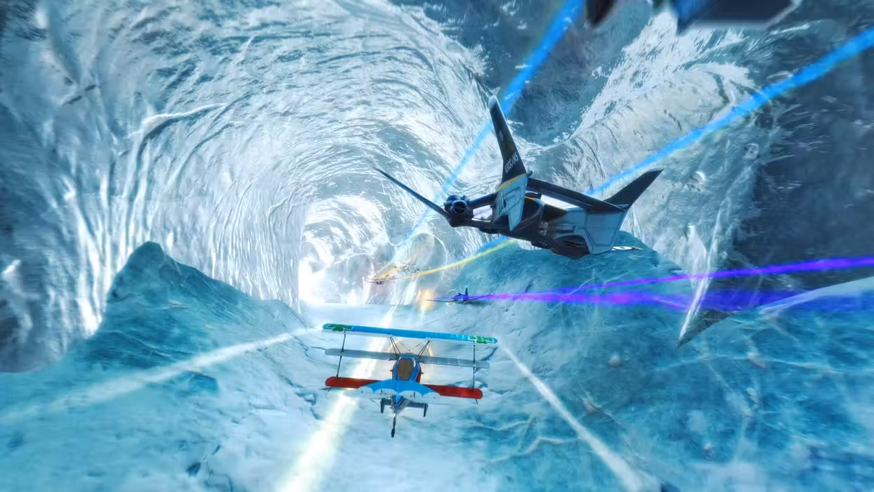 Skydrift Infinity is an action-packed arcade game focusing on the experience of flying alone, and with others, in a light, quick, fast-paced style.
