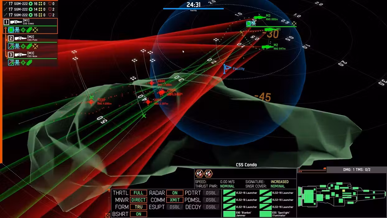 Take command of a fleet of space warships tailored to your exact play-style. Favor a small task group of robust, flexible multi-role combatants, a large group of specialized ships, or something in between. Do battle in a heavily simulation-based tactical game featuring everything from kinetics and beam weapons to realistic radar and electronic warfare. Nebulous seamlessly blends the thoughtfulness of pre-mission planning, tension of battle decision-making, pressure of real-time action, and pain of inevitable sacrifice into an intense tactical space game that will keep you reflecting on every decision (and mistake) for hours after each battle. Skip the economy management: you're here to dominate in battle. Drop into the battlespace with your full fleet and engage the enemy in a tense back and forth where a single mistimed advance, poorly executed withdrawal, or missed shot can turn the tide of battle. Deep, methodical combat based on thrusts, withdrawals, and counter-thrusts keeps the tension ratcheted up without numbing you with a screen constantly full of explosions. With no reinforcements coming, every hit hurts and every loss counts - victory favors thoughtful planning and precise execution. It's in your hands, Commodore. CONTROL IN DEPTH Take unparalleled control of every unit right down to their individual mounts. Keep your entire fleet together, dynamically split off task units, or give each ship its own assignment. Large maps with lots of cover and radar occlusion make methodical positioning and sight lines critical. Massing firepower in one place is not always the best solution, as the enemy could come from any direction in the fully 3-dimensional battlespace. Covering your retreat is always in order. Group your weapons and task them to different targets or focus fire with everything you have. Selecting the appropriate weapon to engage a target is as impactful as deciding which targets to engage at all. Weapons have compounding benefits and drawbacks, all of which can be compensated for and planned against. RADAR E-WAR & DECEPTION Intelligence is key to victory and your situational awareness is never a given. Asteroids and gas clouds can hide ships behind their radar shadows, preventing enemy sensors from detecting their presence, and ensuring enemy illuminators and fire-control radars are unable to mark targets for missile systems. When out in the open, electronic countermeasures take the lead as they attempt to jam, scramble, or otherwise mitigate enemy sensors on board their ships and missile systems alike. Multiple ships moving in close proximity produce a larger signal, making them more easily spotted by enemy sensors, and ships can opt to run cool, turning a variety of systems inactive in order to more easily hide from detection at the cost of some functionality. Occlusion, passive signal detection, balancing radar signature size, and the ability to deceive the enemy makes the fight for intel a critical part of every battle. DESIGN & ADAPT Fleet design allows you to choose between multiple classes, configuring everything from their munitions storage, power supply unit, and electronic warfare capabilities to their damage control systems, point-defense capabilities, and armaments - right down to the types of missiles each bay carries. A point cost system keeps fleets balanced as you design battleships, cruisers, frigates, corvettes and more, arriving at the battlespace with little idea as to what your opponent might be fielding. Scouting enemy fleet composition and adapting to their designs will be essential to securing victory, and at times you may spend half the battle (or more) trying to accurately determine your adversary's capabilities so that you can strike with precision and force. Express your tactical identity through the design of your fleet, and each individual ship within. DETAILED SUBSYSTEMS Each system and subsystem aboard your ships perform specific tasks and are tracked and simulated individually. Their position on your ship can determine optimal facing when unleashing a salvo, or the risk factor when enemy systems open fire. Vital systems should be protected with the help of point-defense systems and defensive maneuvering that presents auxiliary systems towards incoming fire while keeping essential systems hidden behind the armor plating and hull. Damage is modeled for individual components, determining which ship systems remain active under enemy fire, and damage control teams work rapidly to repair what they can as they move from compartment to compartment. Retreating from active combat to repair damaged components before re-engaging is not only a viable strategy, but at times, an essential maneuver, and in a worst case scenario, a ship with a breach in its reactor can be quite a potent weapon in its own way. MADE FOR MODS Nebulous has extensive modding support, with hundreds of player-made mods available on Steam Workshop including new maps, ships, weapons, and more.
