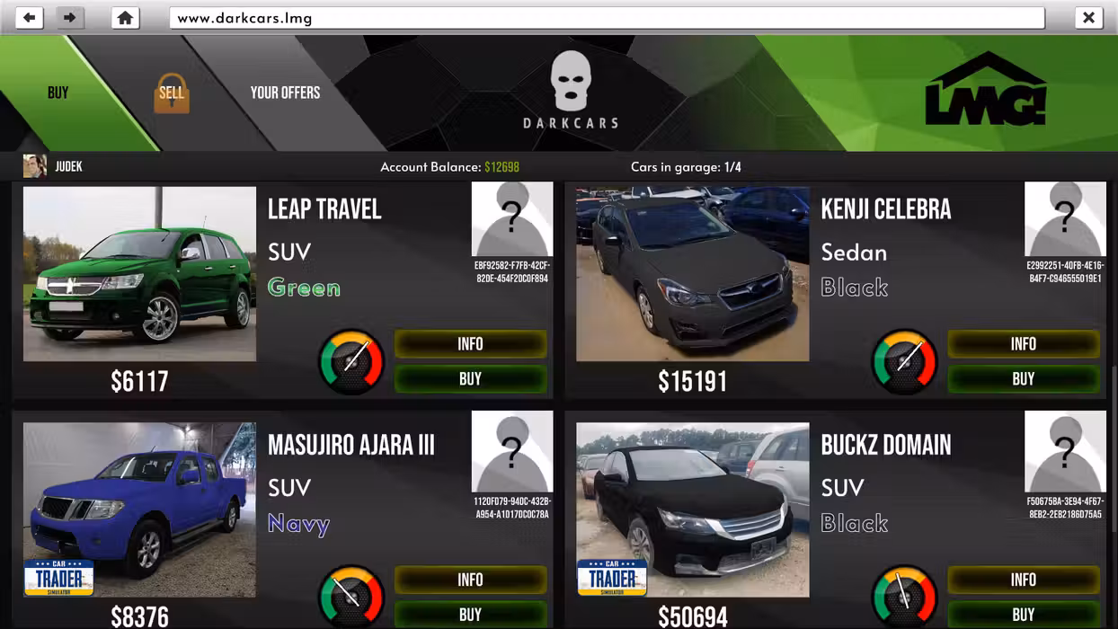 There are many cars available in the game that you will be able to negotiate for or buy directly on the internet auctions. Every few minutes new cars will appear on auction alongside a group of people willing to pay for the best models. Not only will you need to have cash, but you will also have to bid wisely to get the most from the auctioned vehicle.