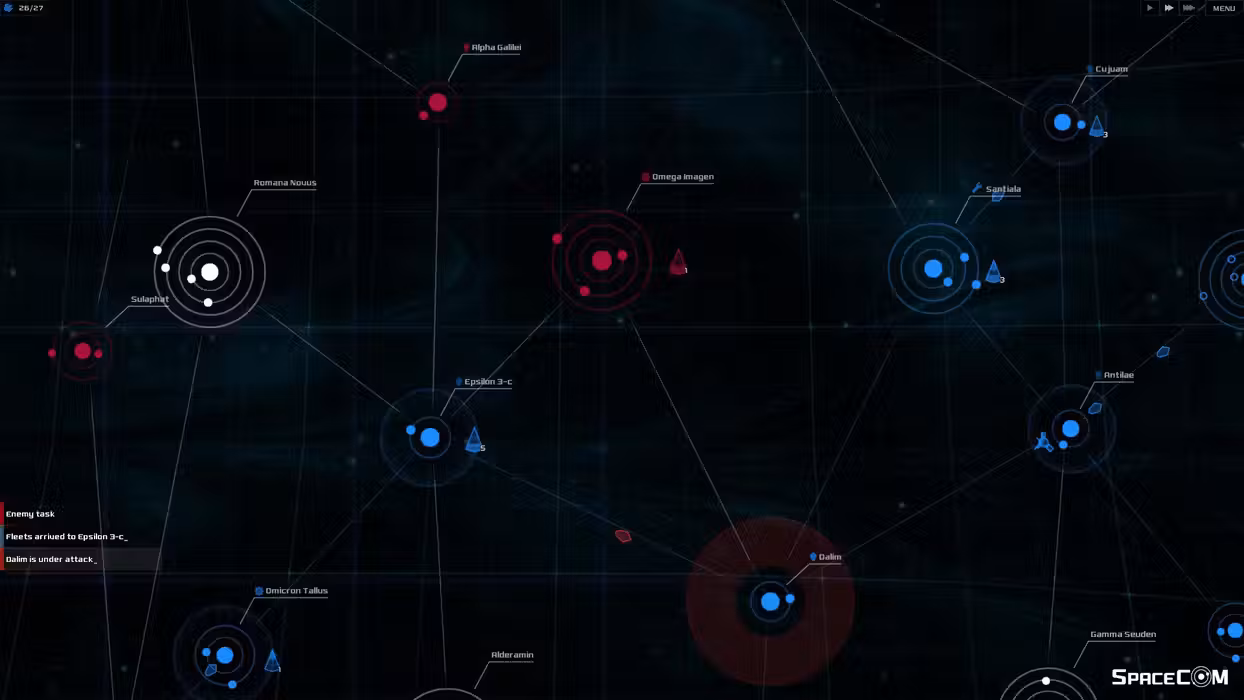 SPACECOM – a strategic-to-the-bone, starfleet command game in which deception, smart movement, and choices to battle decide victory or defeat. No coincidence, no luck. Spacecom pushes your ability to strategize with a focus on real-time tactics and planning. Use proven maneuvers learned from military legends or devise your own plans. Test your wits in a single player campaign, go head-to-head with up to 5 opponents in multiplayer or experiment with new strategies in AI skirmish mode. Most of all, you'll need a bright mind, cunning, and sound tactics. When the war begins, leave the little things behind and dive into austere soundscapes as you immerse yourself in starfleet command. From now on, what matters is your grasp of tactics and strategy, not how fast you can click. Spacecom is about creativity in planning, not complexity of game mechanics. Key Features - Single player campaign that will test your wit in diverse tactical puzzles - Tense multiplayer - dominate up to 5 players per map - No coincidence, no luck. What matters is good planning and successful execution - Sound designed specifically to trigger strategic thinking - Minimalistic visual design inspired by military technology - Created to exalt smart thinking over fast clicking Previews In a market currently dominated by MOBAs, SPACECOM is set to offer a more nich perspective on strategy. Focused on concise combat roles and managing supply routes, it's all about using limited resources, to outwit your friends. - GameTrailers.com What really strikes me is that all of this is presented in an incredibly minimalistic style.(...) There is none of the distraction of flashy visual effects or incredibly renderedenvironments, this is pure strategy.(...) For me, an advocate of game mechanics above all else, this is as close to pure space strategy as I’ve seen and I’m really looking forward to the finished product. - gaminglives.com Spacecom is an interesting idea, as a quick-play strategy game. In a genre that tends to frighten off newcomers, Spacecom is poised to be the title that welcomes them in with open arms, avoiding complexity while still offering that classic 4X feeling. - Criticallysane.com