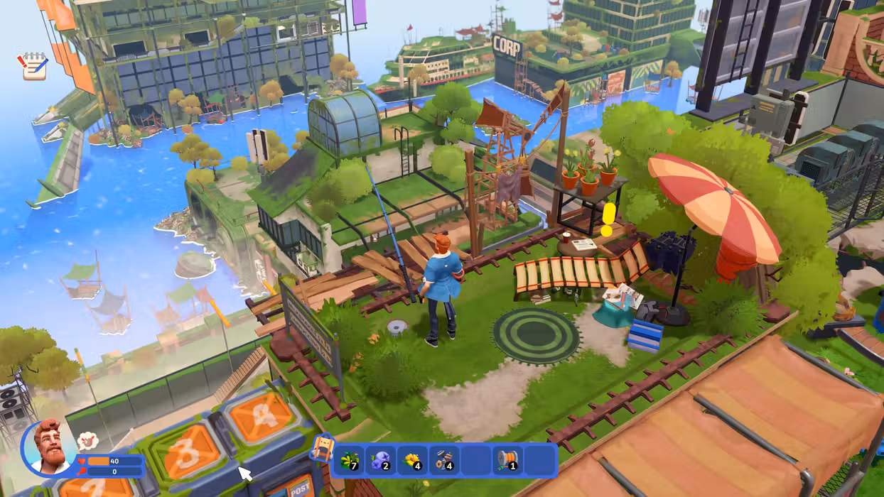 Starting from scratch on an empty roof, explore your surroundings, find the necessary resources, tools and gadgets.