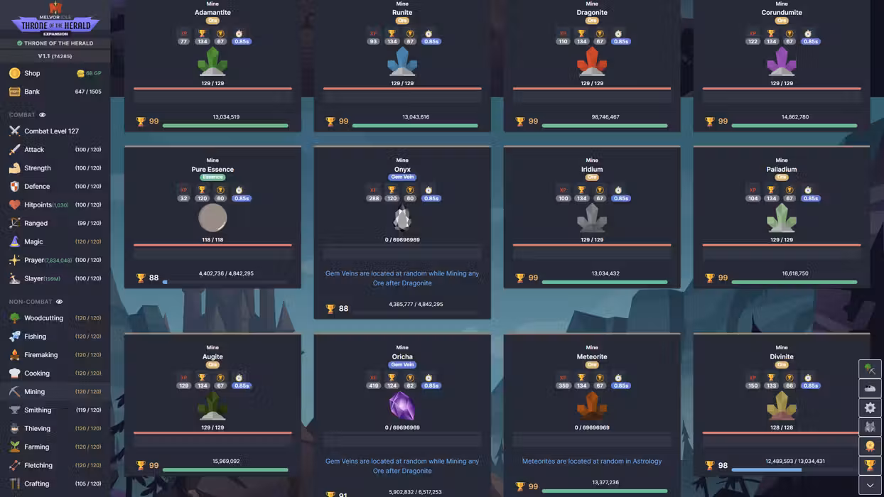 Throne of the Herald adds tons of new content to Melvor Idle including new locations to explore, new gear to craft, more monsters to fight and a massive expansion to the story. Discover more about the mystic forces that surround the lands of Melvor, and the dark forces that remain hidden beyond the Capital...