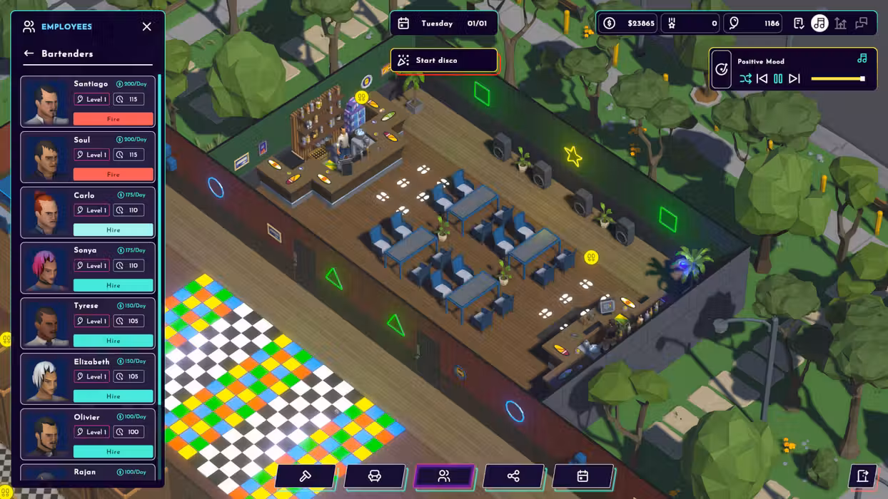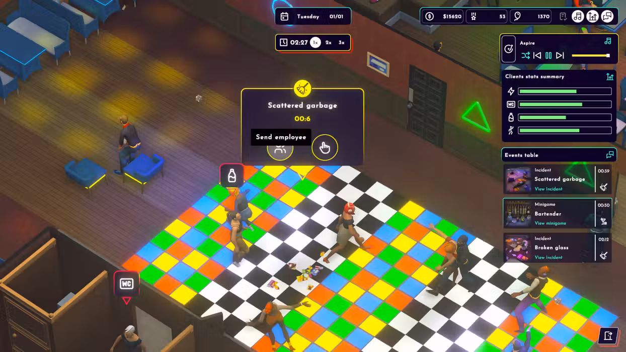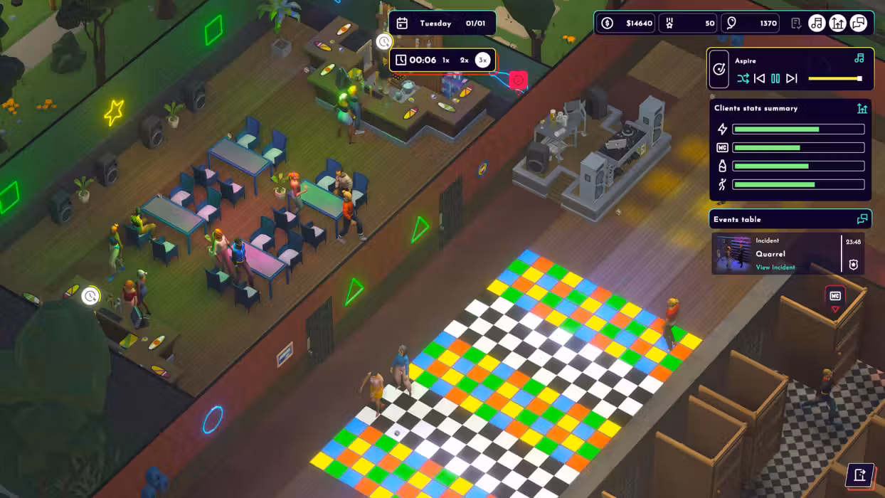 At the beginning of the game, you will be able to choose your manager. Each of them has their own unique skills to manage different aspects of the club. Decide in which direction you want to develop your club. The skills of the manager you choose will bear fruit in further gameplay, for example: bonuses for bartenders, organizing concerts, or taking care of customer satisfaction. The choice is yours!
