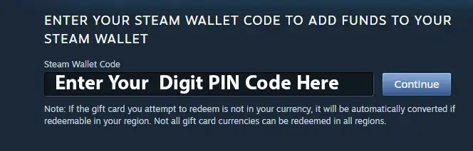 أدخل مفتاح Steam Wallet في لوحة "Steam Wallet Code"