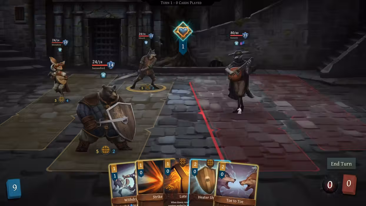 In combination with her Lute, Moonstone's unique hero ability allows her to apply temporary passives to all of her allies! New passives are made available every time Moonstone uses her ability. Those passives can then be applied by playing her Lute, and last until the next time Lute is drawn.