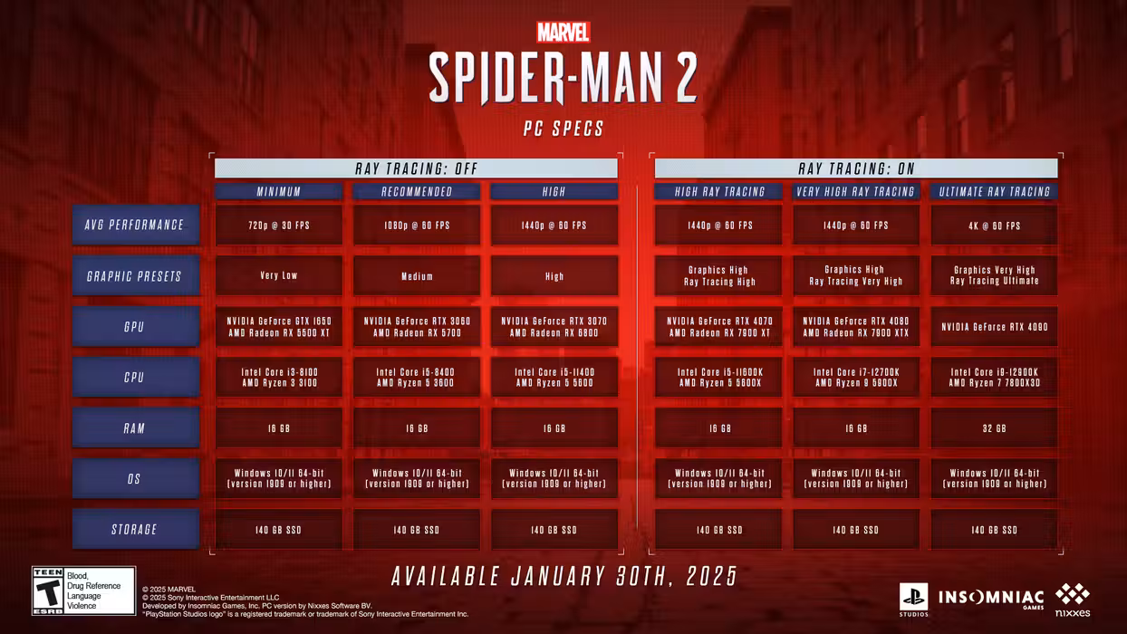 Developed by Insomniac Games in collaboration with Marvel, and optimized for PC by Nixxes Software.