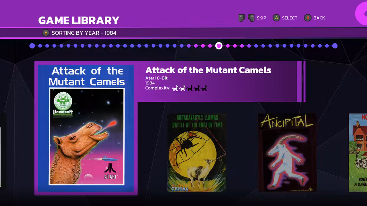 Attack of the Mutant Camels for the unreleased Konix Multi-System console is also included.