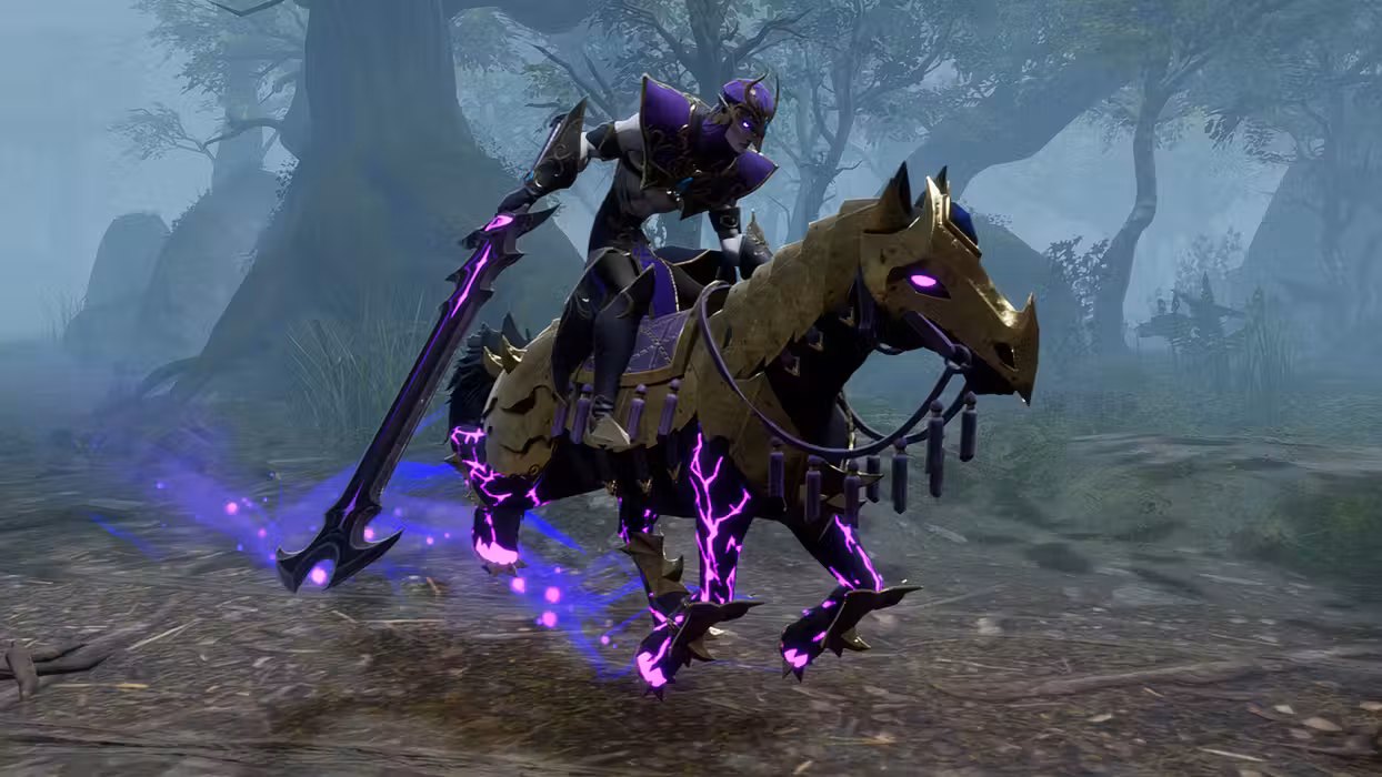 A corrupted steed in glorious gold plating and silken purple drapery, glimmering with supernatural power left in your wake as you ride. The Darkvenom Horse Saddle is a craftable item unlocked as you unlock the Horse Saddle in the game.
