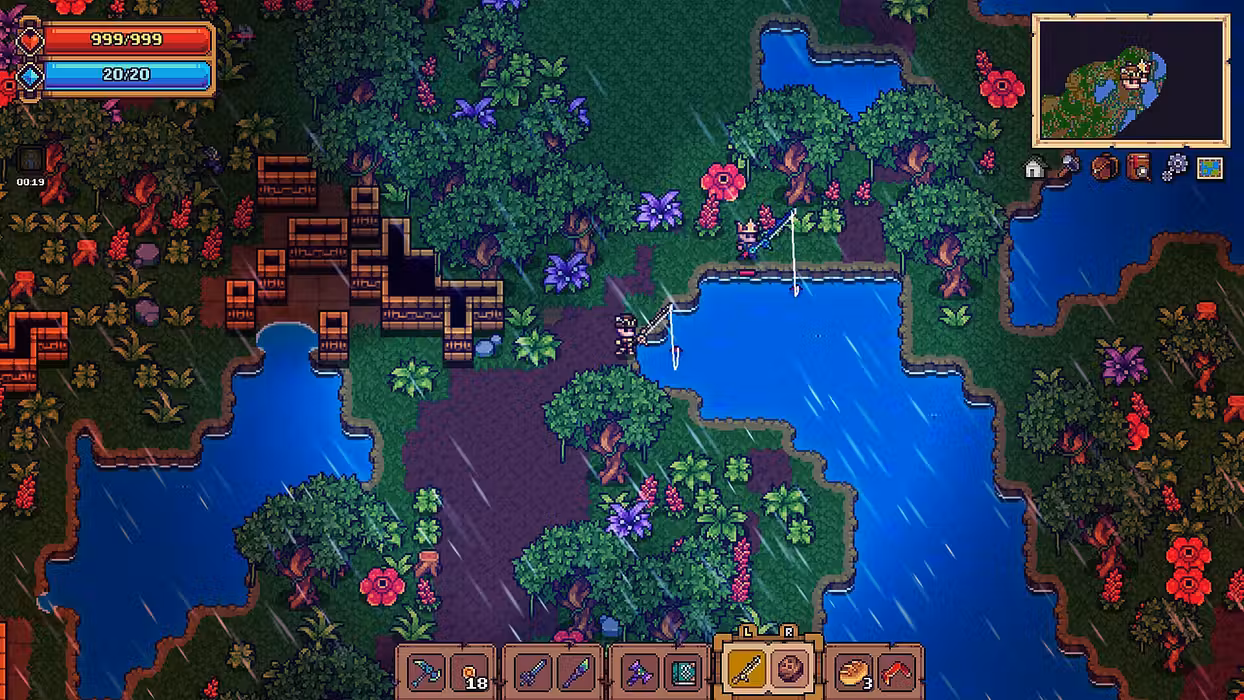 Fishing, farming, cooking or setting up a deadly monster arena with cables and traps - fun and relaxing activities that complement your adventurous island life, offering variety and charm to your journey.