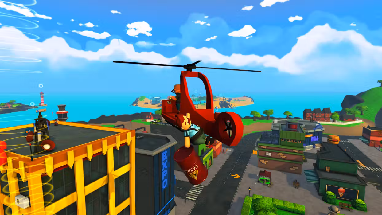 The game world is huge! Earn money through making deliveries to unlock new zones with new delivery routes, vehicles, and cosmetics. Ever do a delivery onto a moving blimp?