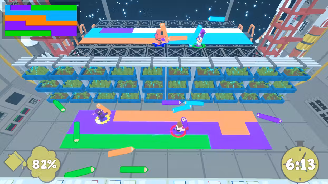 Of course, you can always go from accidentally stepping on each other’s toes to deliberately doing just that. The new and improved Versus Mode pits players in a race to become the next great painter, trying to complete the painting ahead of the opposing team. It’s the ultimate painting competition: Can you complete the paintings before the other team, navigating the unique challenges of each canvas, the pitfalls of team communication, and of course the pressure of the competition’s brushes…