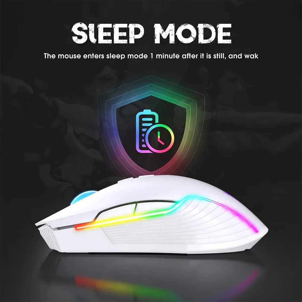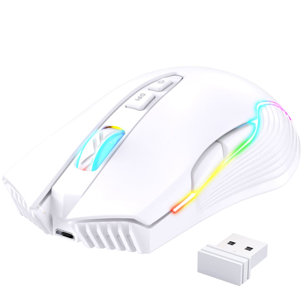 ارتقِ بإعداد مكتبك مع Onikuma CW905 باللون الأبيض. استمتع باتصال ثنائي الوضع (لاسلكي 2.4GHz أو سلكي USB)، وDPI قابل للتعديل لسرعة أو دقة أعلى، وإضاءة RGB تتوافق مع إعدادك.