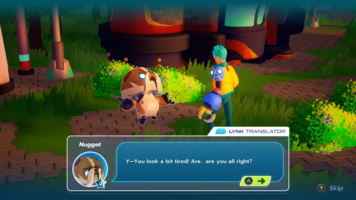 Enlist the help of robots and up to 5 friends to work together and build a bright local community. Catch fish, collect critters, harvest crops, and craft items to make your home uniquely yours! In addition to enriching your town, use the resources you collect to upgrade your character with special powers and techniques to take to your next fight.